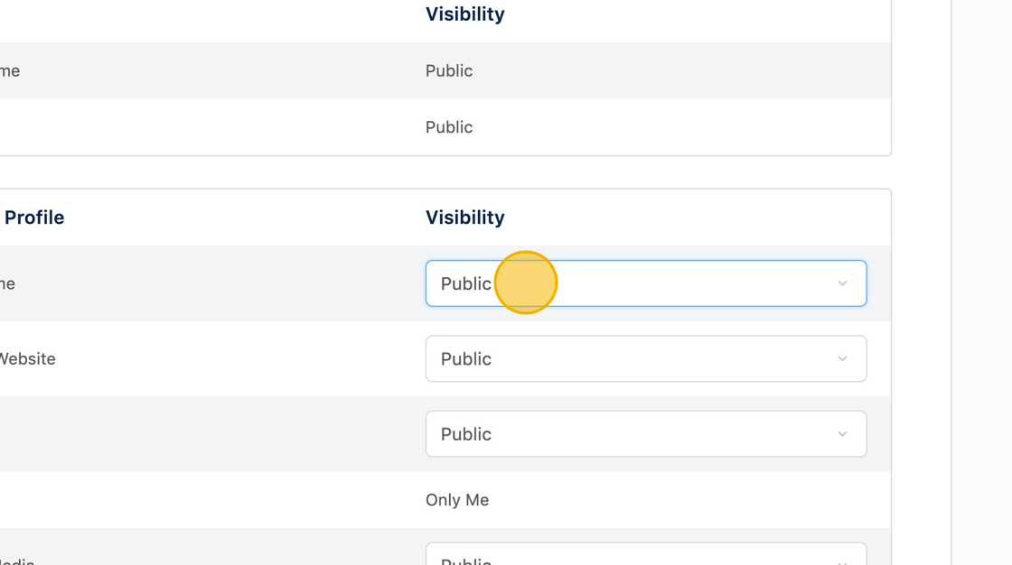 3 Select whether each item should be visible publicly, only to members, or only to you.