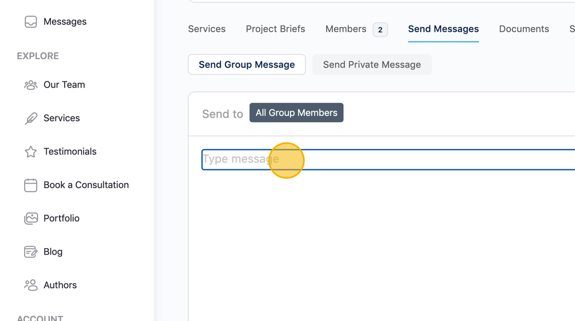 6 Click "Send Private Message." Select a team member to send a private message.