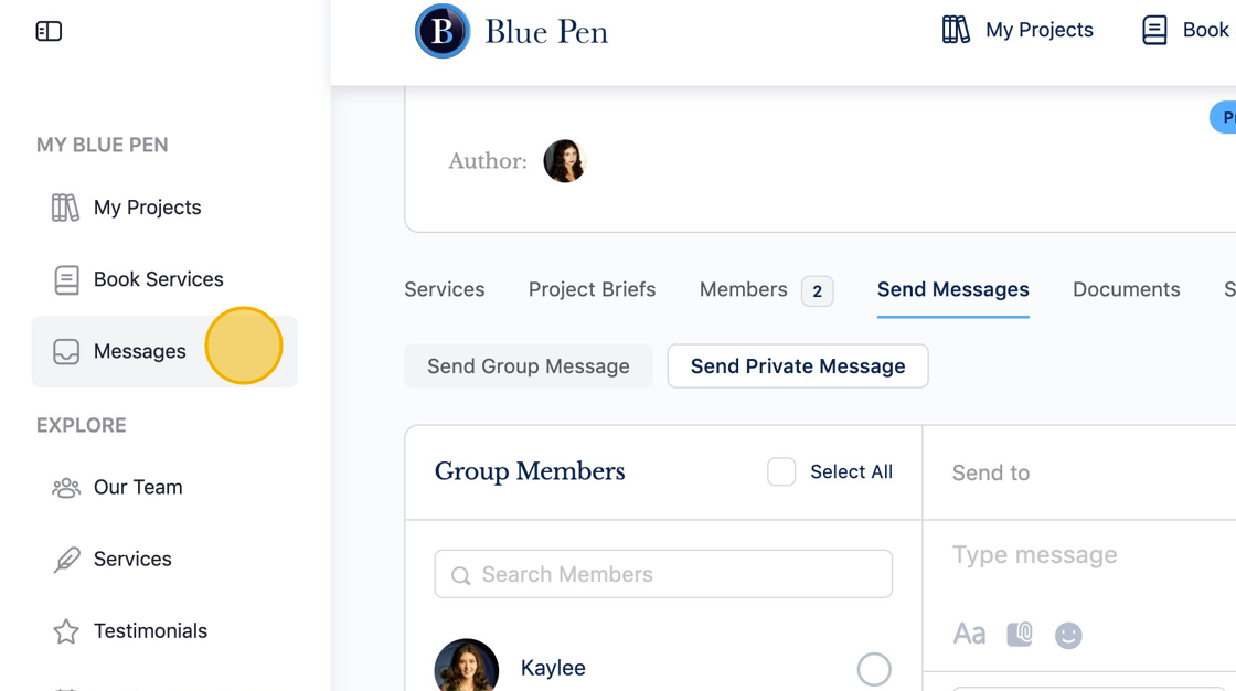 You will use Blue Pen’s messaging system to communicate with your team.